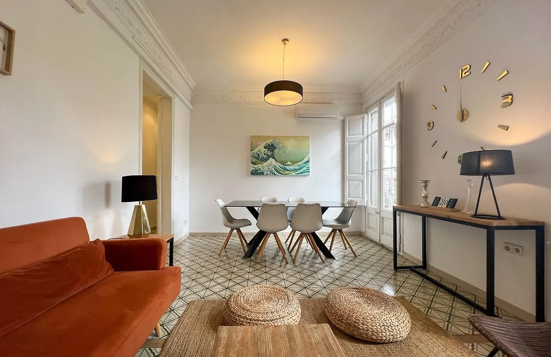 Este apartamento de 92 m² se encuentra en el barrio Eixample, cerca de la estación de metro Hospital Clínic, a tan solo 200 metros. Este apartamento está a 2 km del centro de Barcelona. El Parque Güell está situado a 10 minutos en coche del alojamiento.